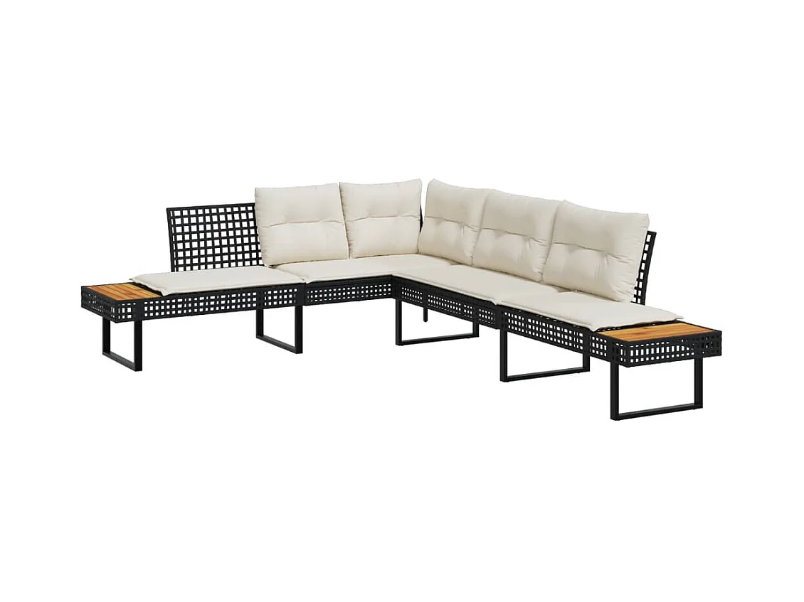 Canapé de jardin 2 places avec table et tabourets noir rotin