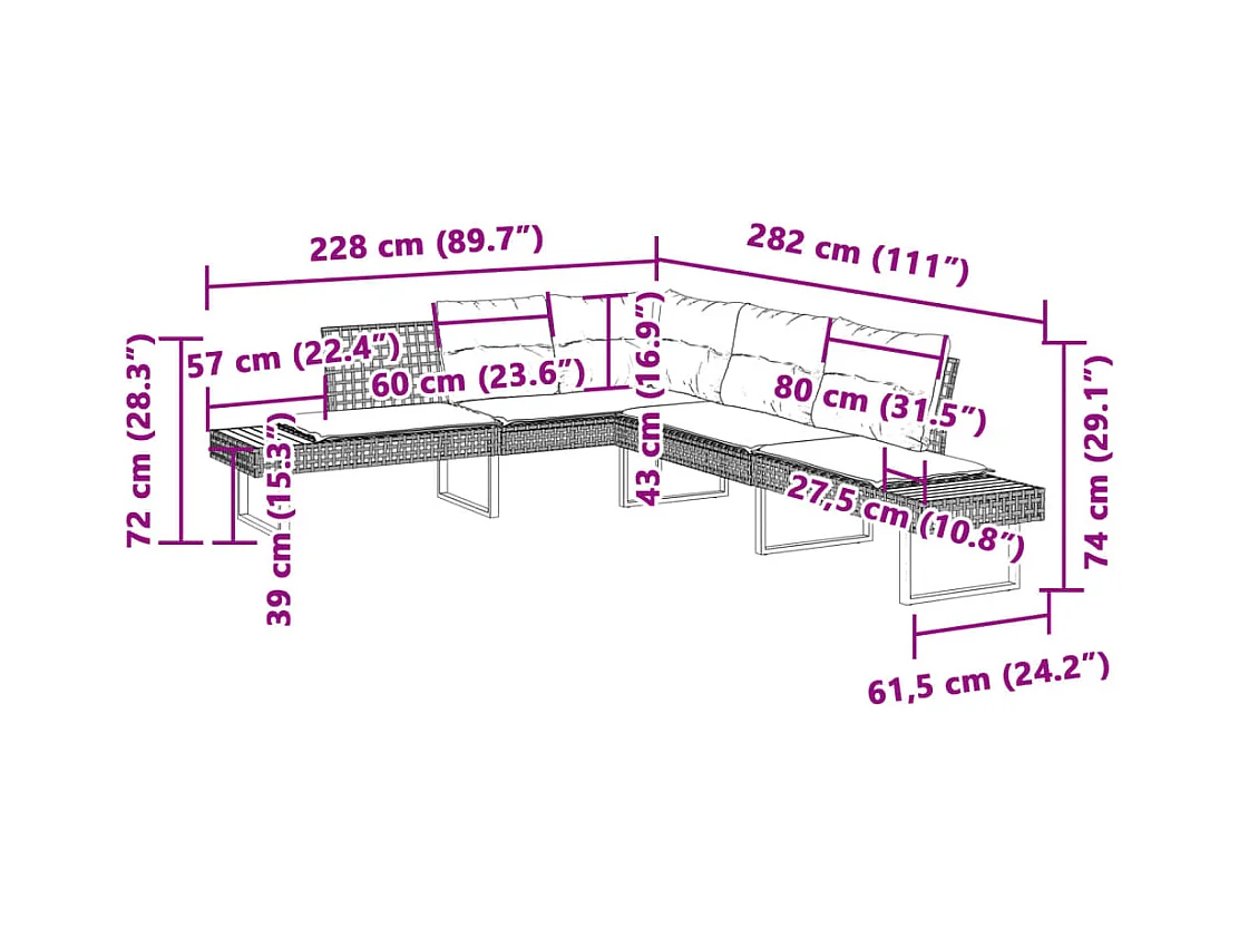 Salon de jardin avec coussins 2 pièces gris résine tressée et verre