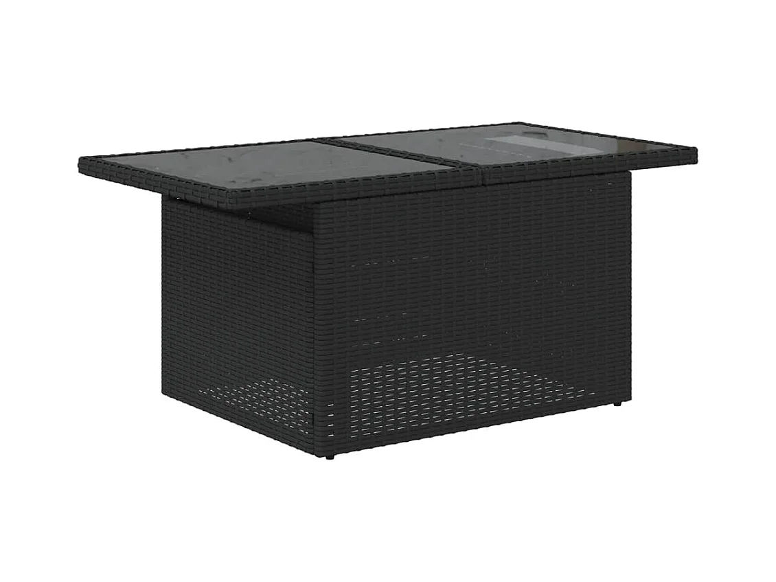 Salon de jardin avec coussins 2pcs noir résine tressée et verre