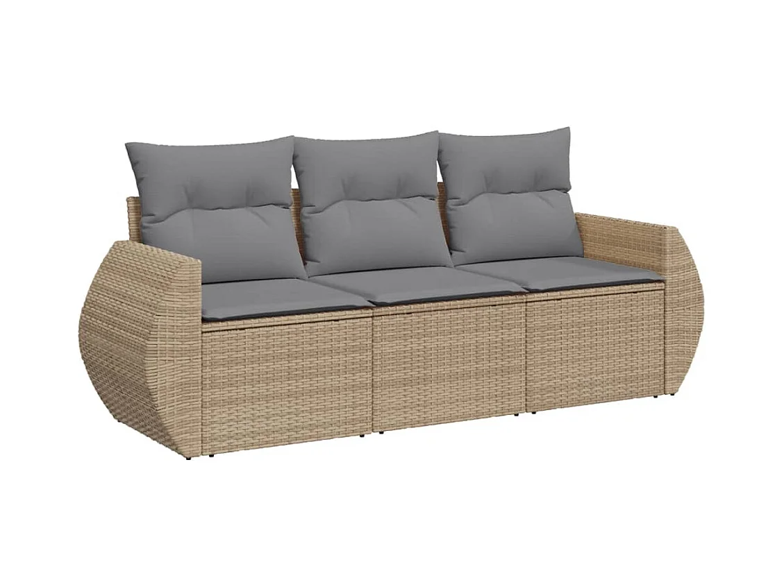 Salon de jardin avec coussins 3 pcs beige résine tressée