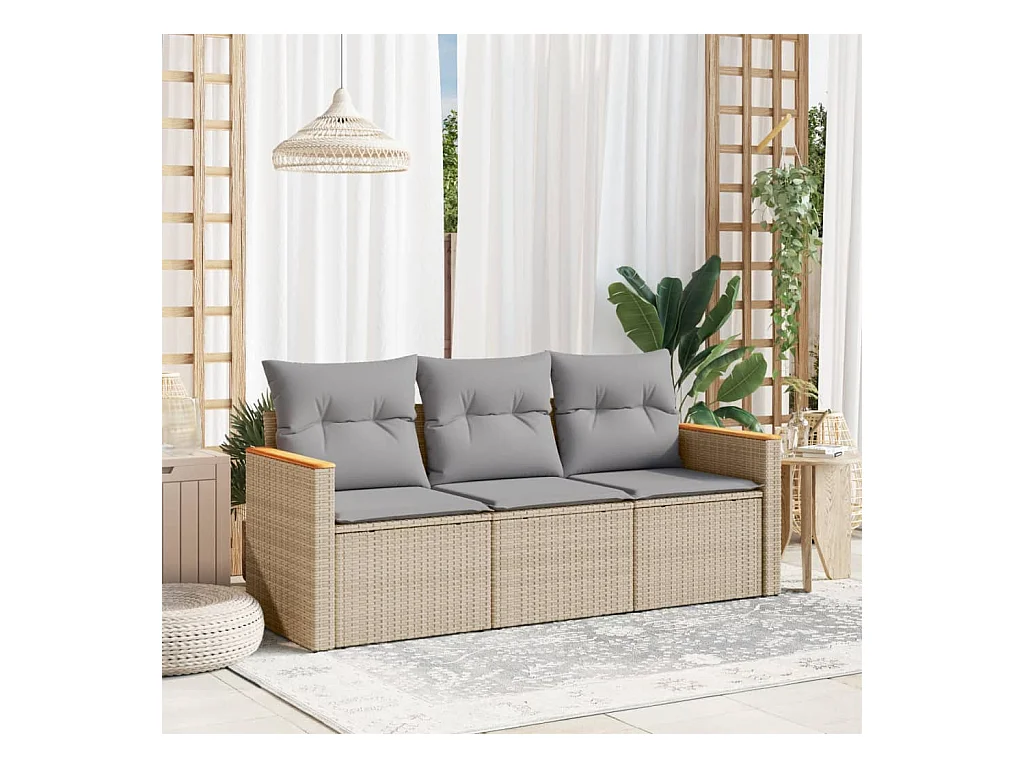 Salon de jardin avec coussins 3 pcs beige résine tressée FR86326