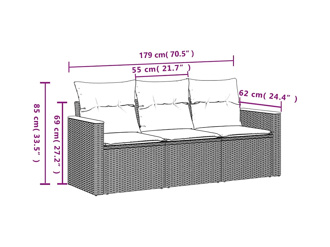 Salon de jardin avec coussins 3 pcs beige résine tressée FR17741