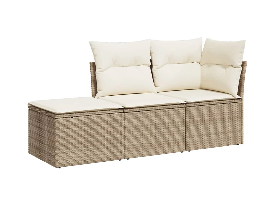 Salon de jardin avec coussins 3 pcs beige résine tressée BE34502