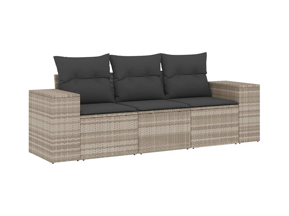 Salon de jardin avec coussins 3 pcs gris clair résine tressée