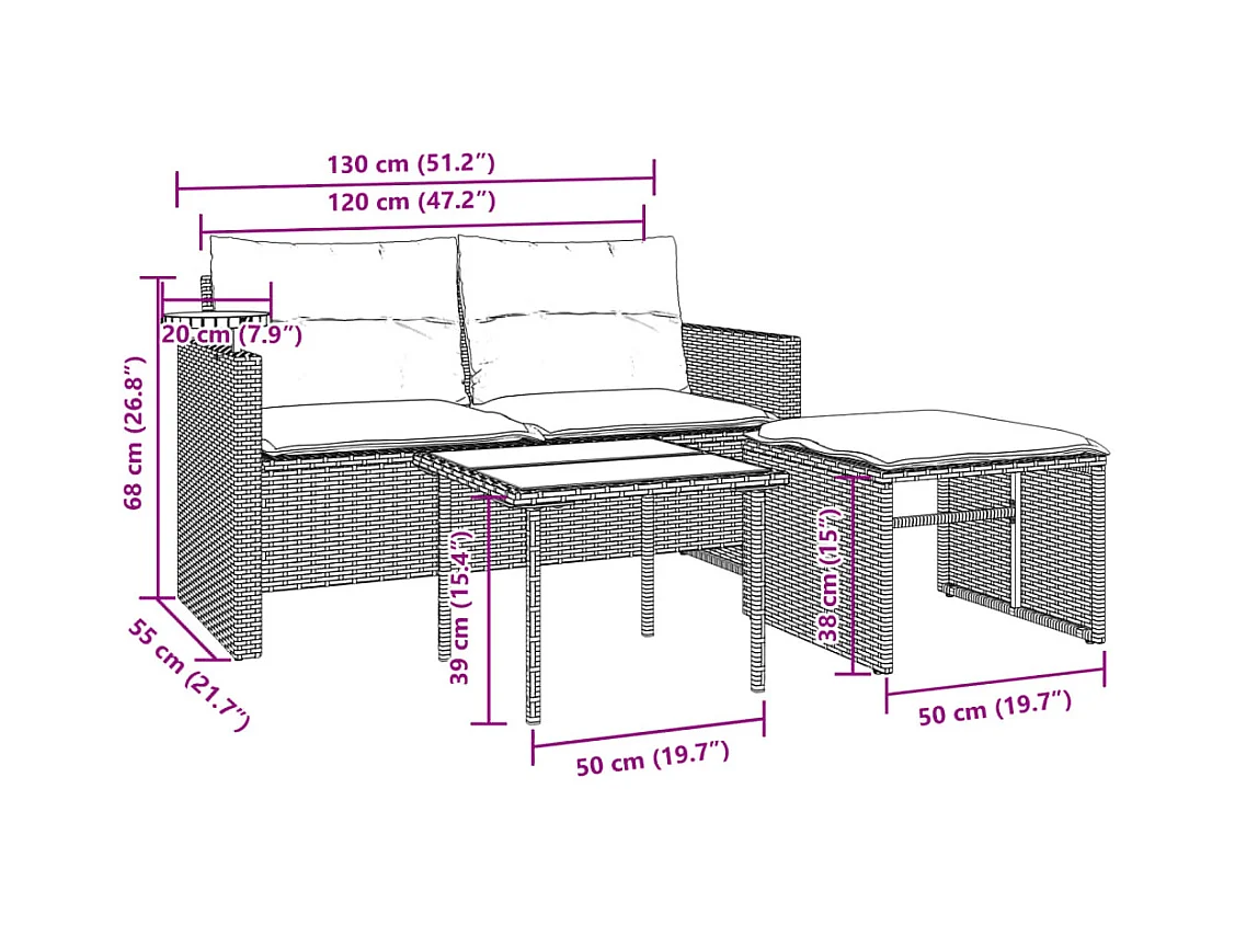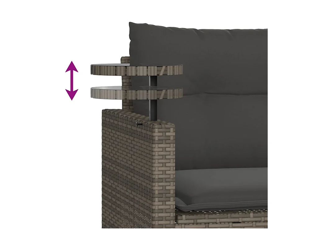 Salon de jardin avec coussins 3 pcs gris résine tressée