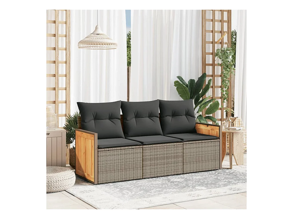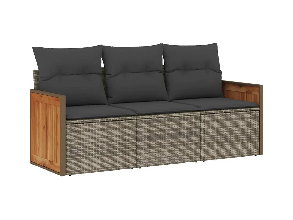 Salon de jardin avec coussins 3 pcs gris résine tressée FR59861