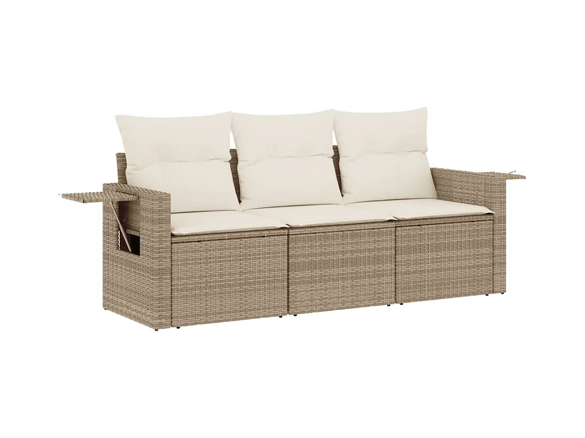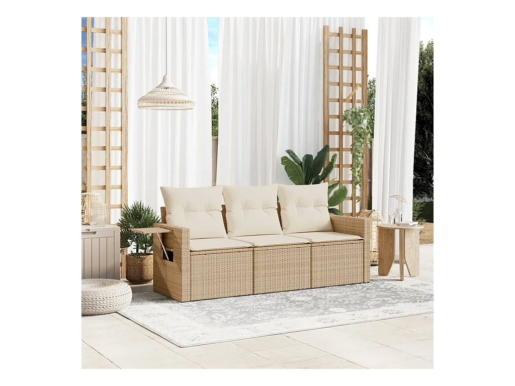 Salon de jardin avec coussins 3 pcs beige résine tressée FR86326