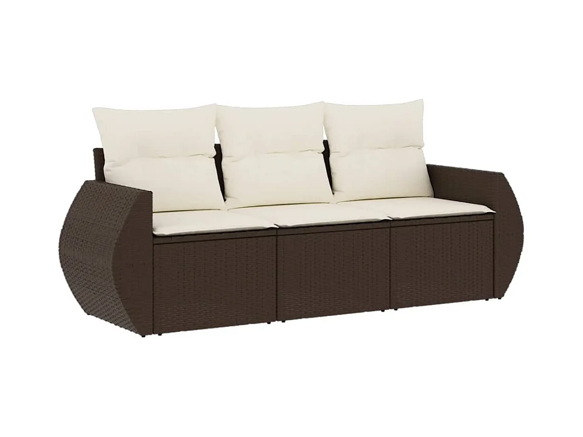 Salon de jardin avec coussins 3 pièces marron résine tressée
