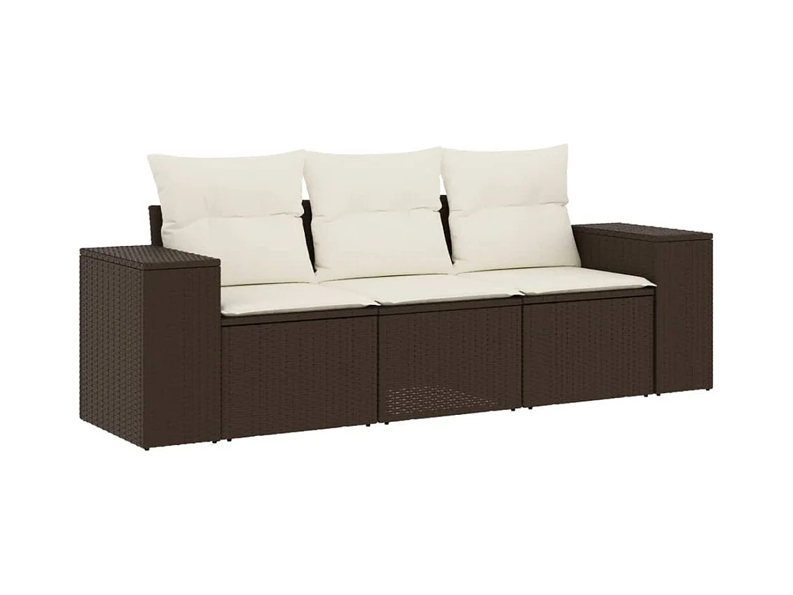Salon de jardin avec coussins 3 pièces marron résine tressée