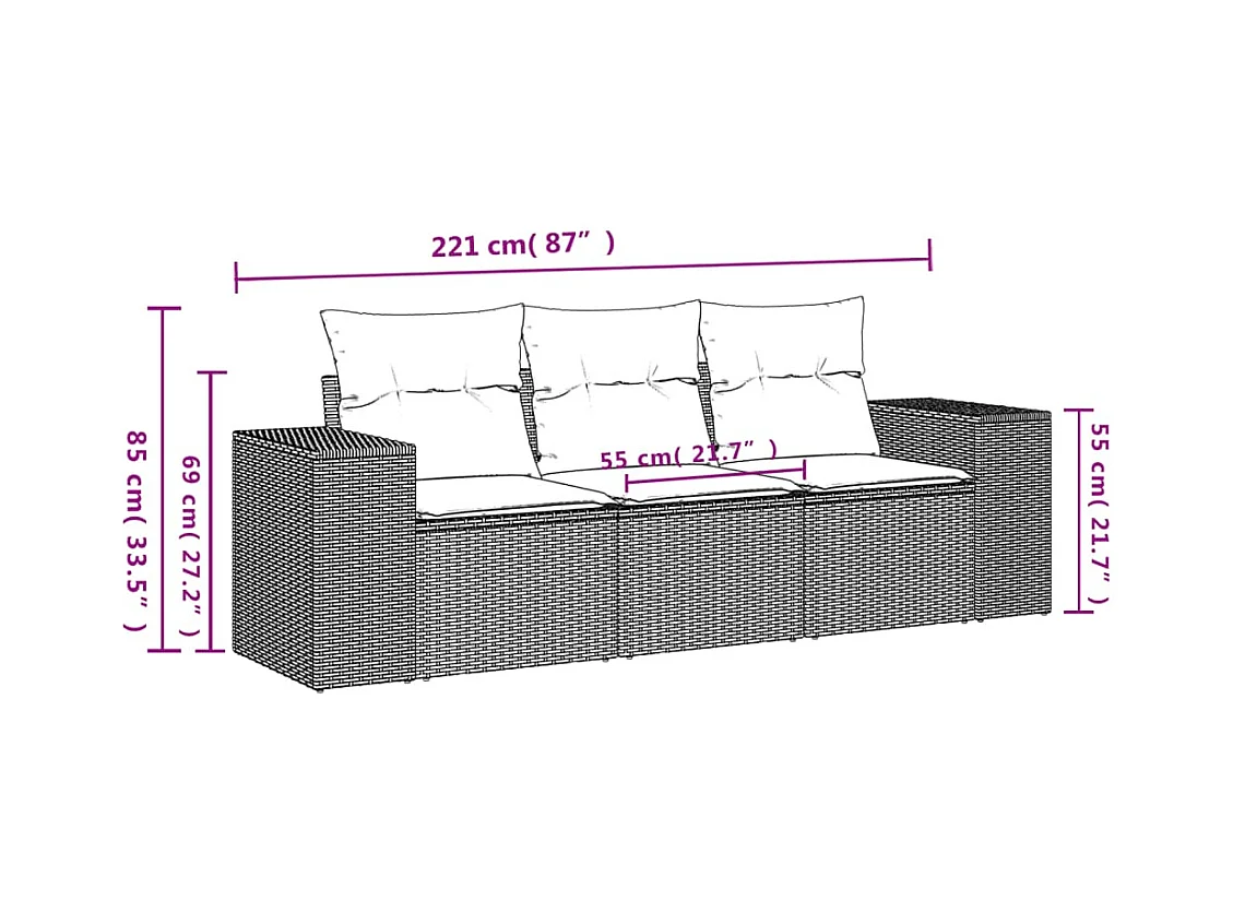 Salon de jardin 3 pcs avec coussins Résine tressée Marron BE94282