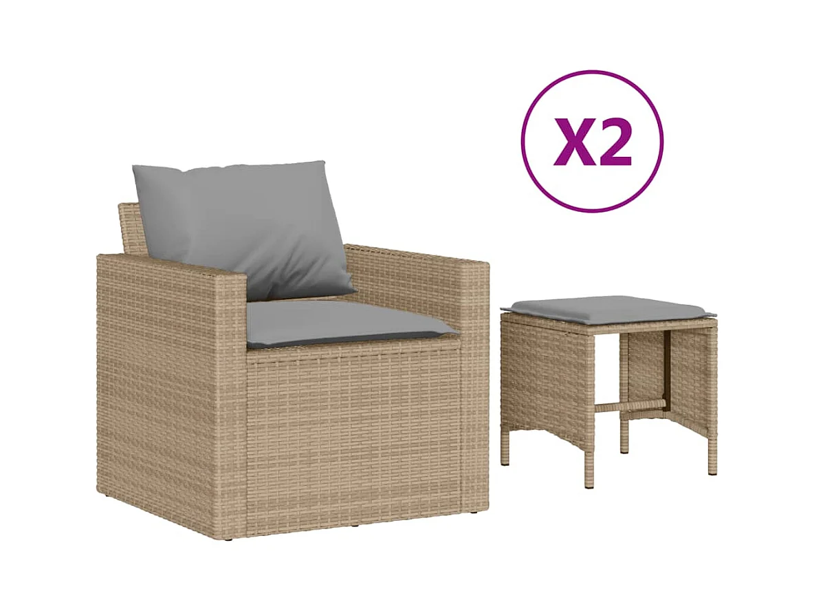 Salon de jardin avec coussins 4 pcs beige résine tressée