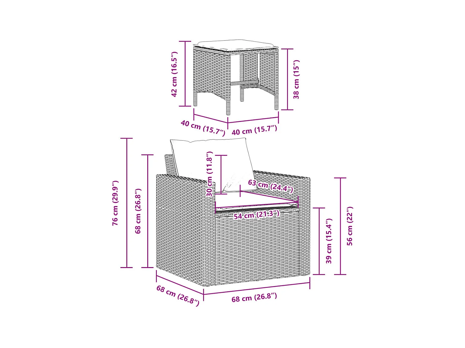 Salon complet de jardin marron
