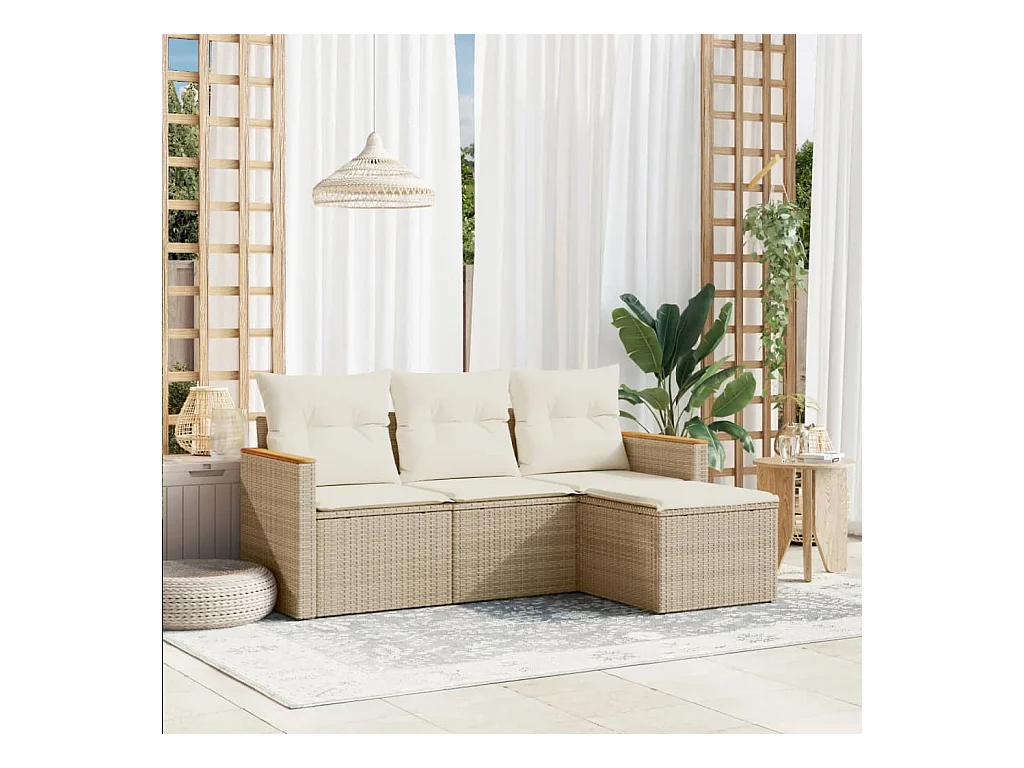 Salon de jardin avec coussins 4 pcs beige résine tressée FR95079