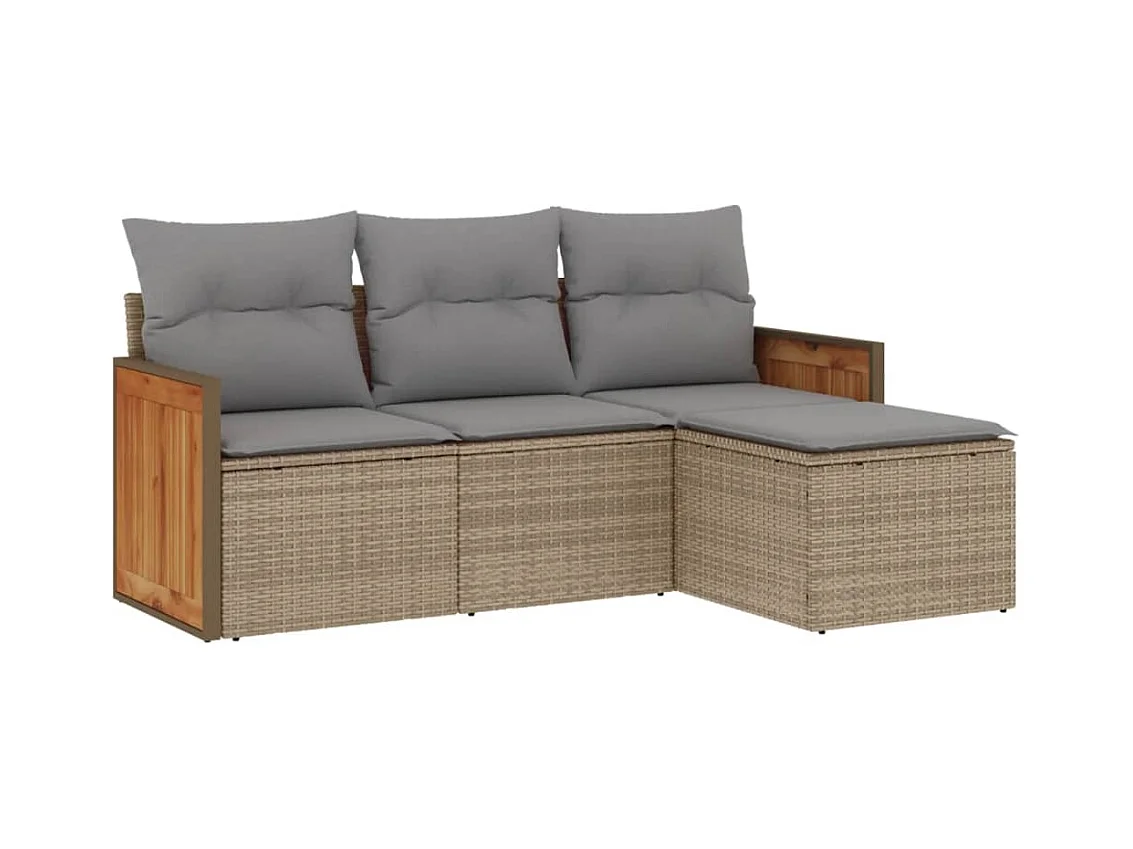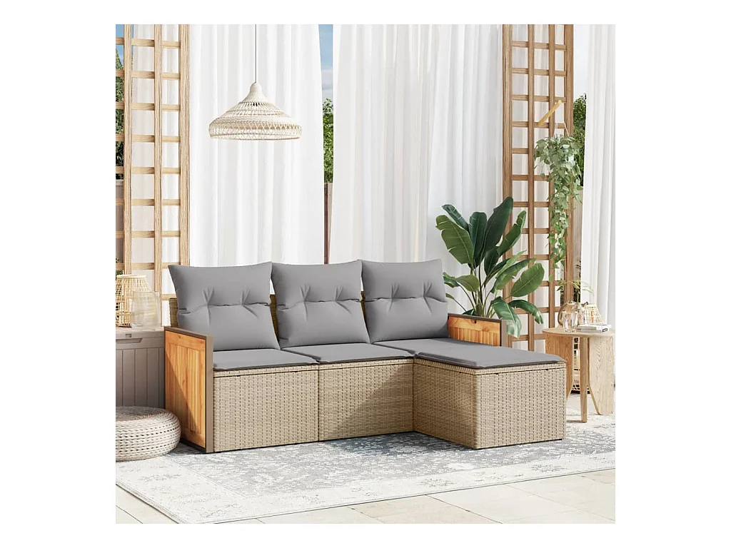 Salon de jardin avec coussins 4 pcs beige résine tressée FR50768