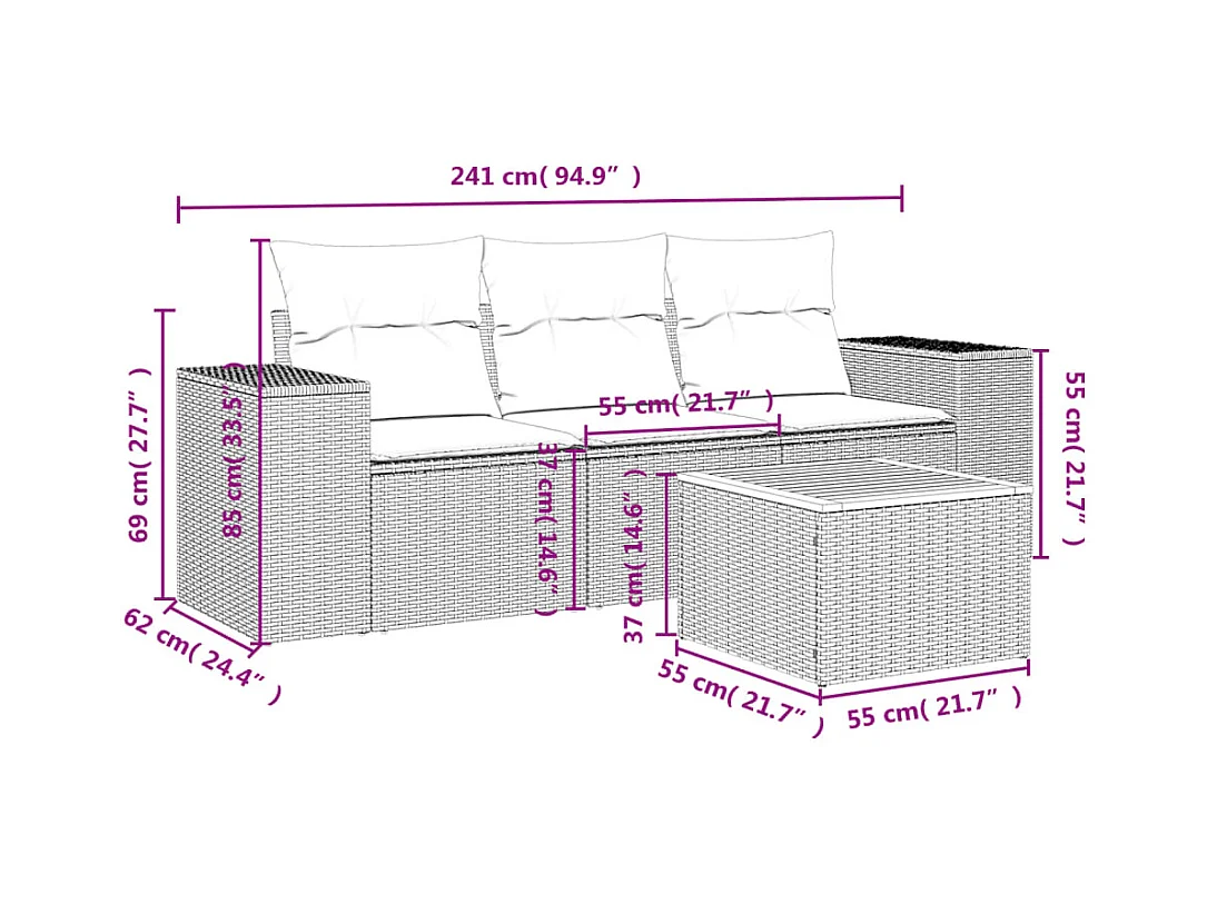 Salon de jardin avec coussins 4 pcs beige résine tressée BE59435