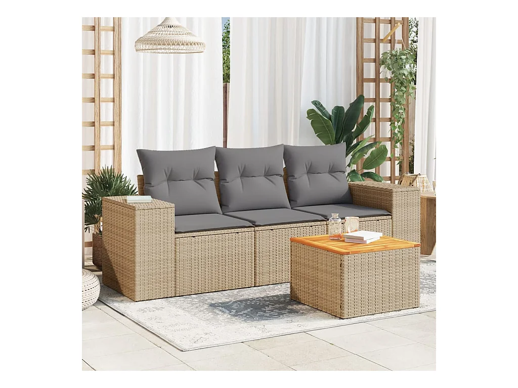 Salon de jardin avec coussins 4 pcs beige résine tressée BE88230
