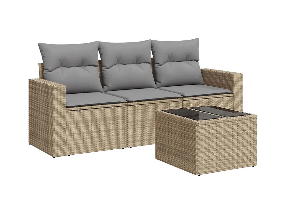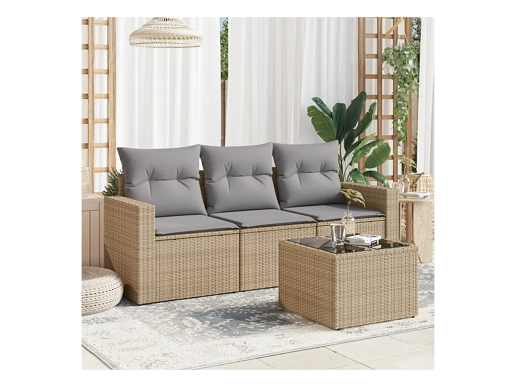 Salon de jardin avec coussins 4 pcs beige résine tressée BE39896
