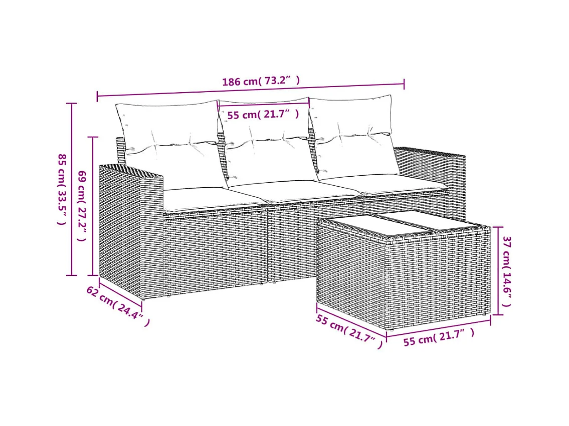 Salon de jardin avec coussins 4 pcs beige résine tressée BE83777