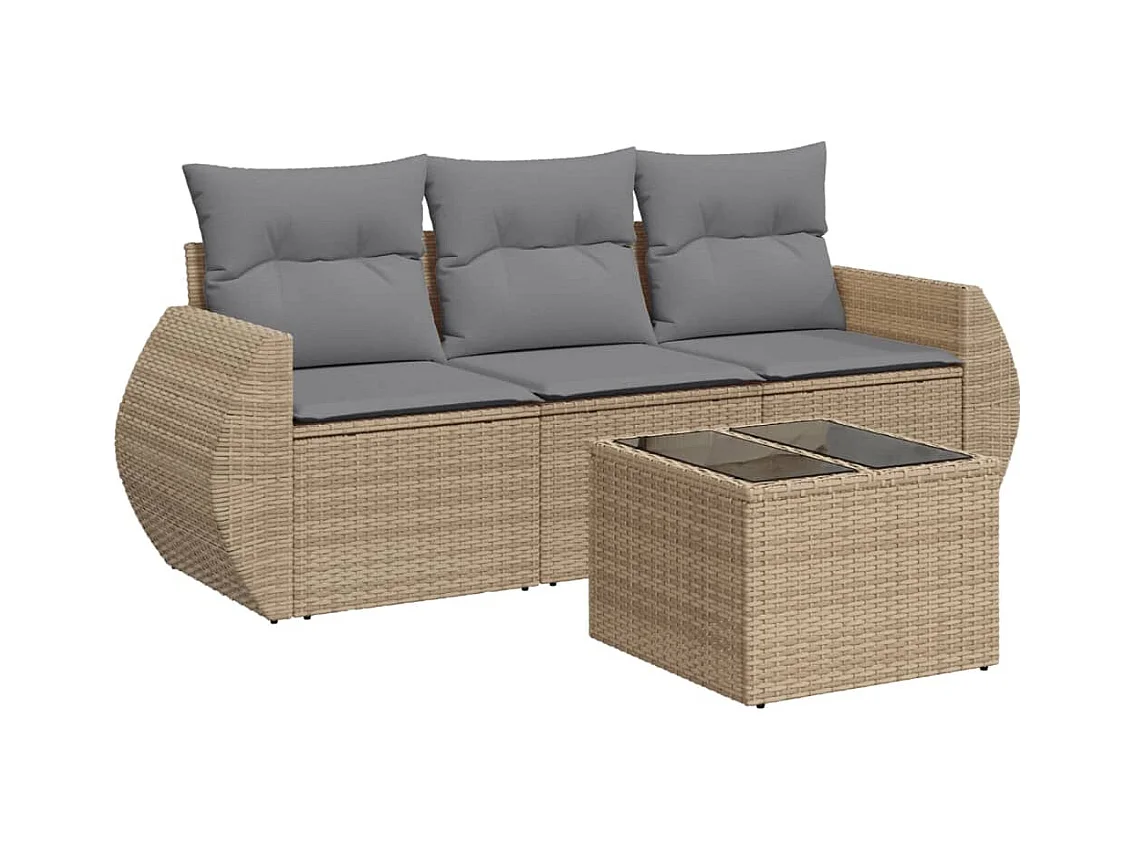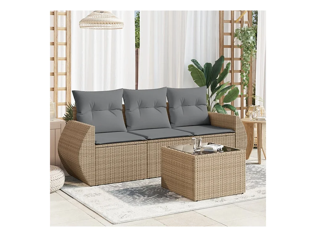 Salon de jardin avec coussins 4 pcs beige résine tressée BE18004