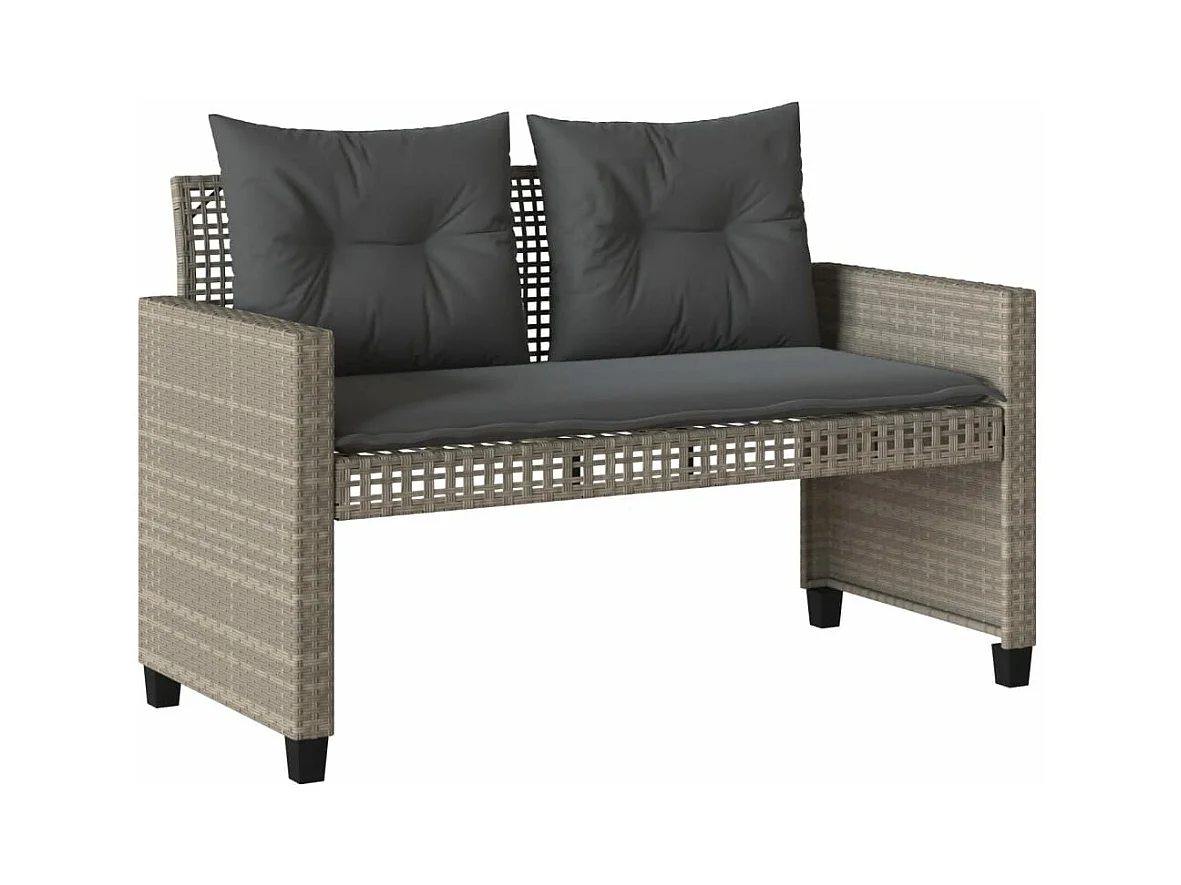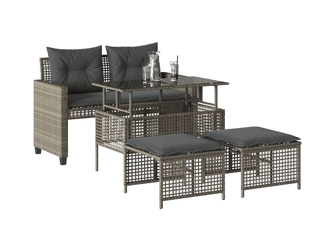 Salon de jardin avec coussins 4 pcs gris résine tressée verre
