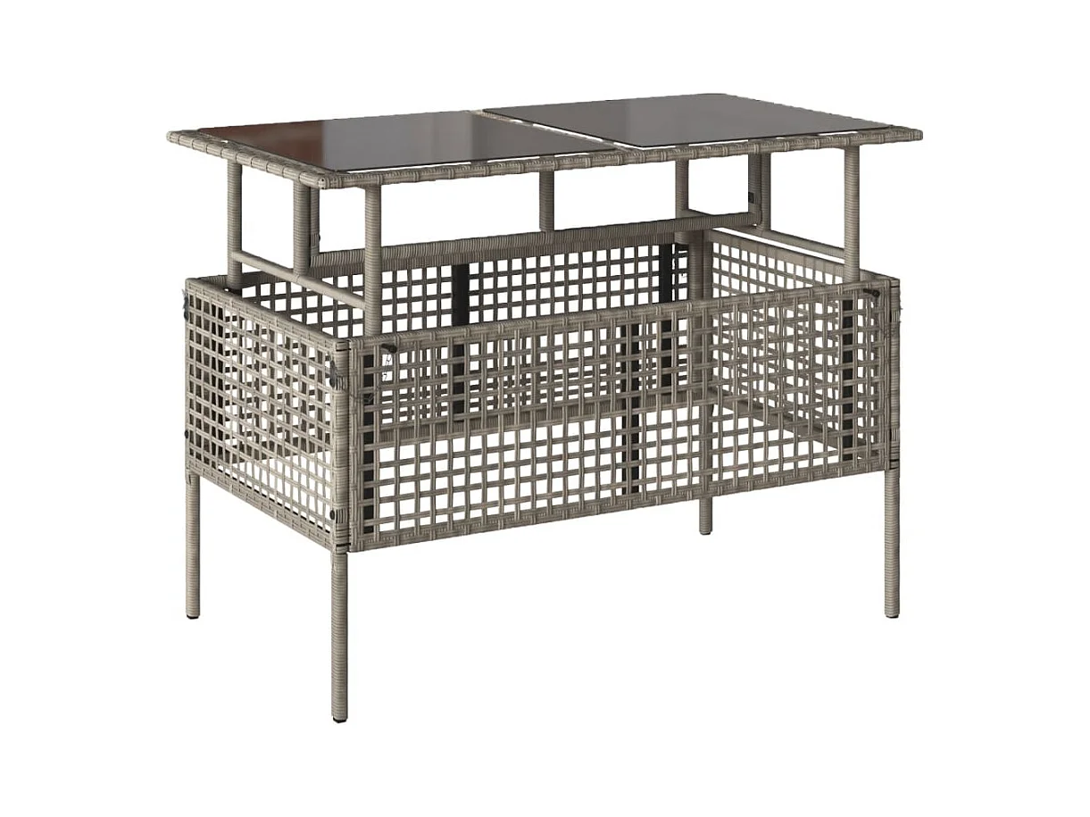 Salon de jardin avec coussins 4 pcs gris clair poly rotin verre