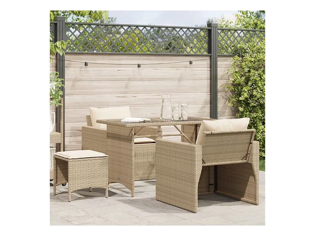Salon de jardin avec coussins 4 pcs beige résine tressée FR71393