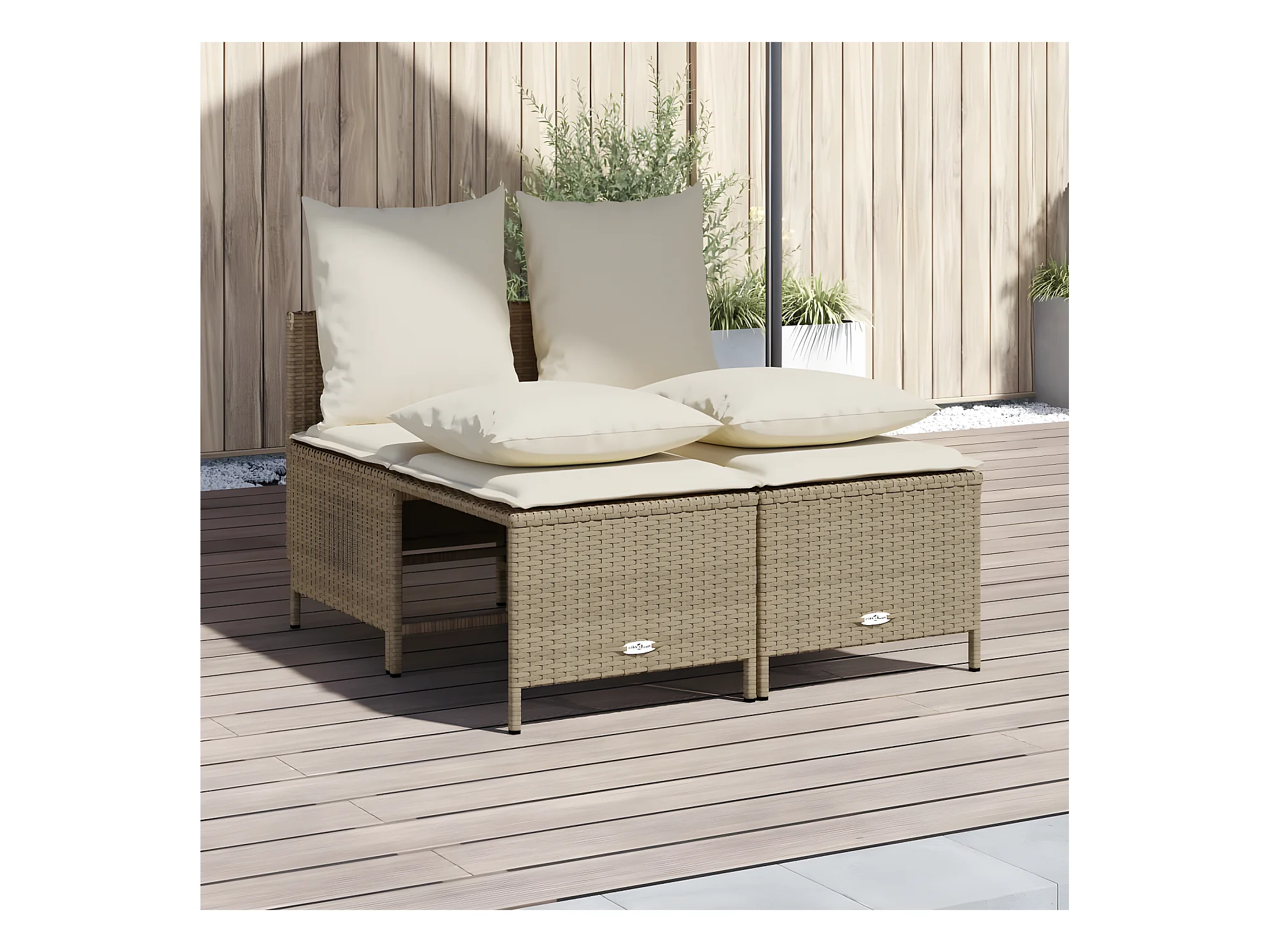 Salon de jardin avec coussins 3 pcs beige résine tressée FR89949