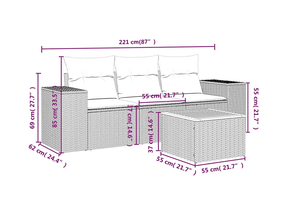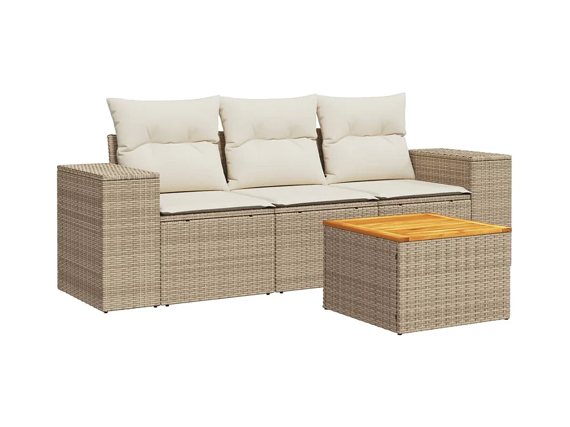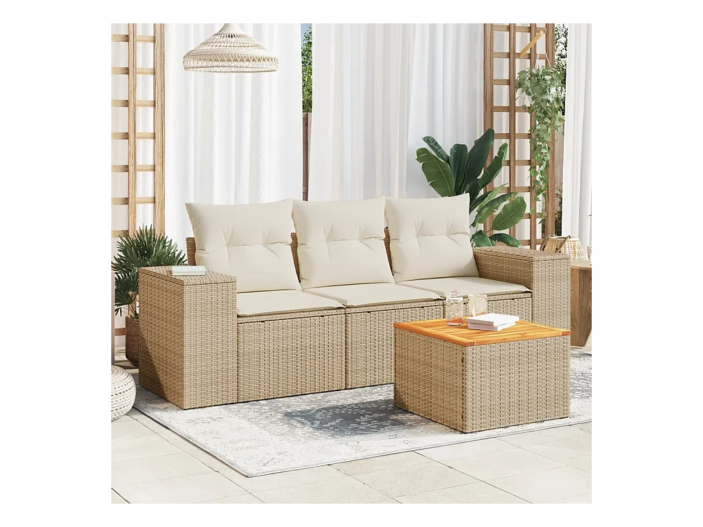 Salon de jardin avec coussins 4 pièces beige résine tressée