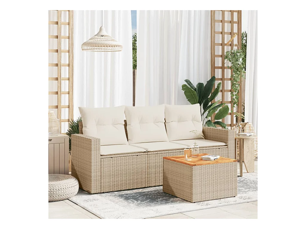 Salon de jardin avec coussins 4 pièces beige résine tressée