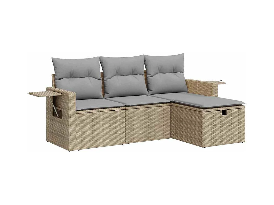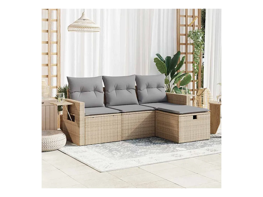 Salon de jardin avec coussins 4 pièces beige résine tressée
