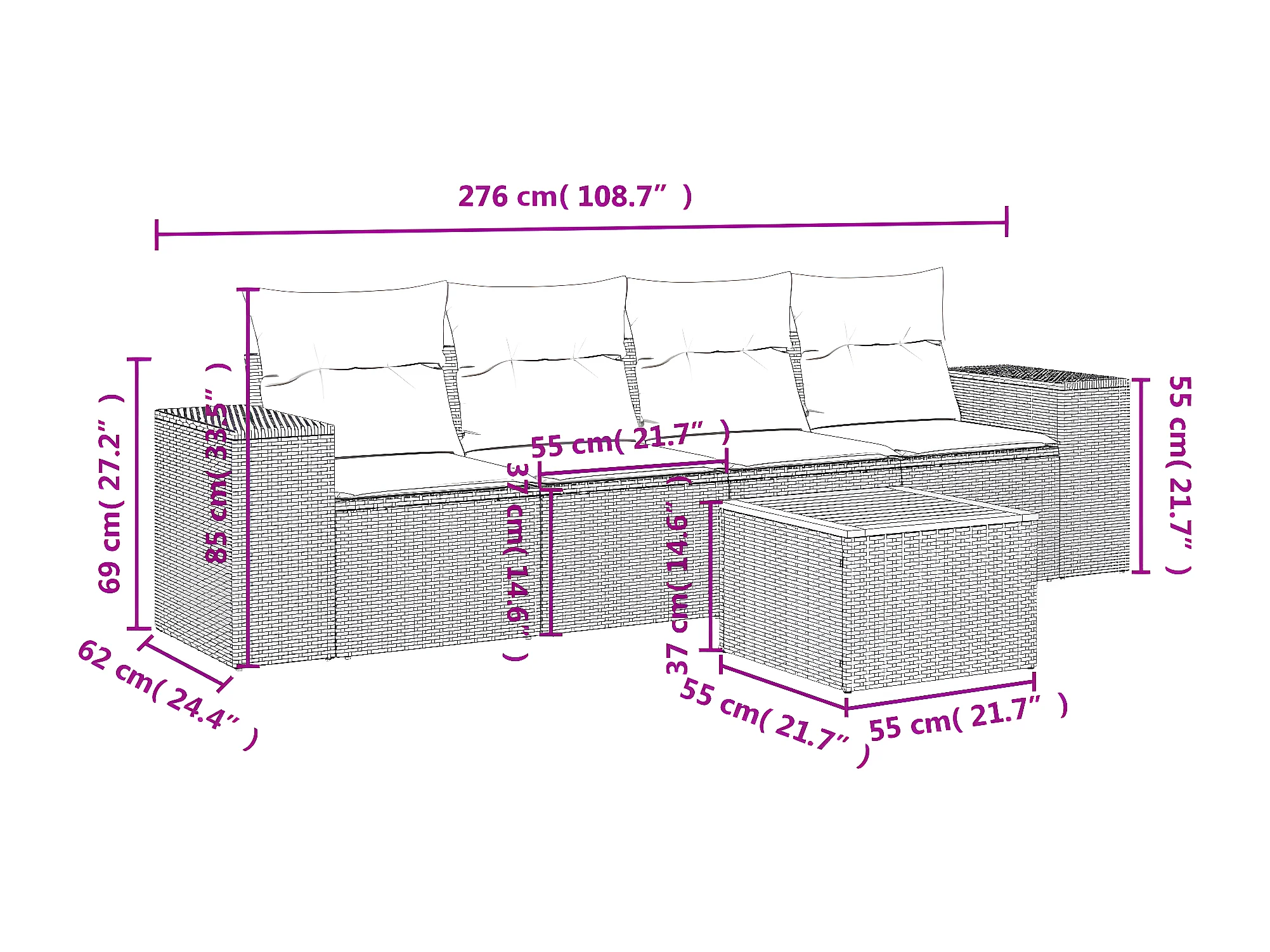 Salon de jardin avec coussins 5 pcs beige résine tressée