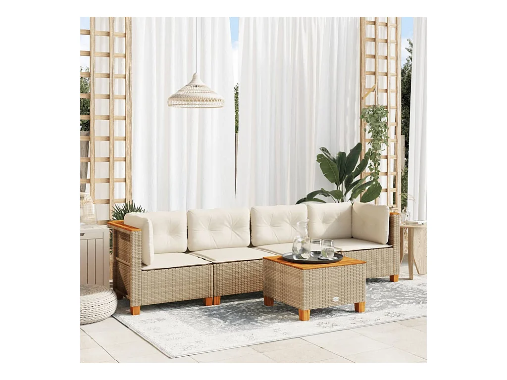 Salon de jardin avec coussins 4 pcs beige résine tressée