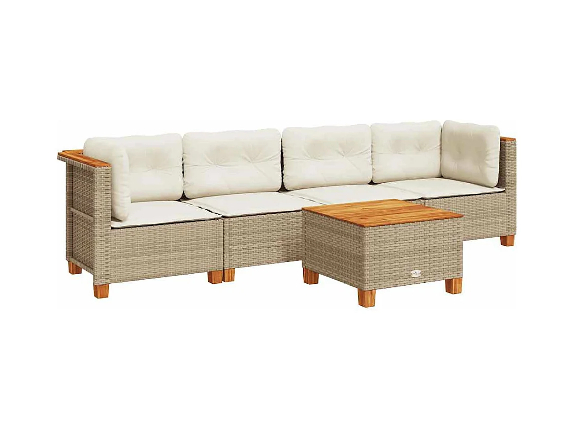 Salon de jardin avec coussins 5 pcs beige résine tressée