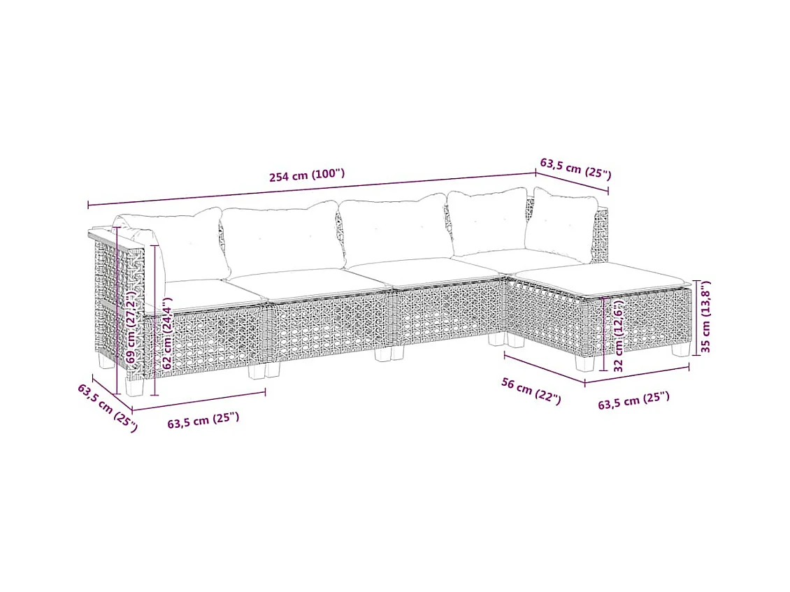Salon de jardin avec coussins 5 pcs beige résine tressée