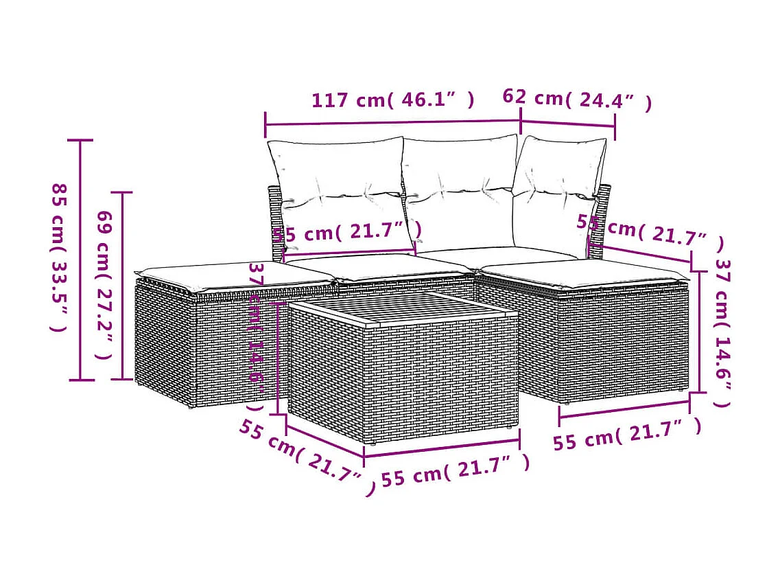 Salon de jardin avec coussins 5 pcs beige résine tressée