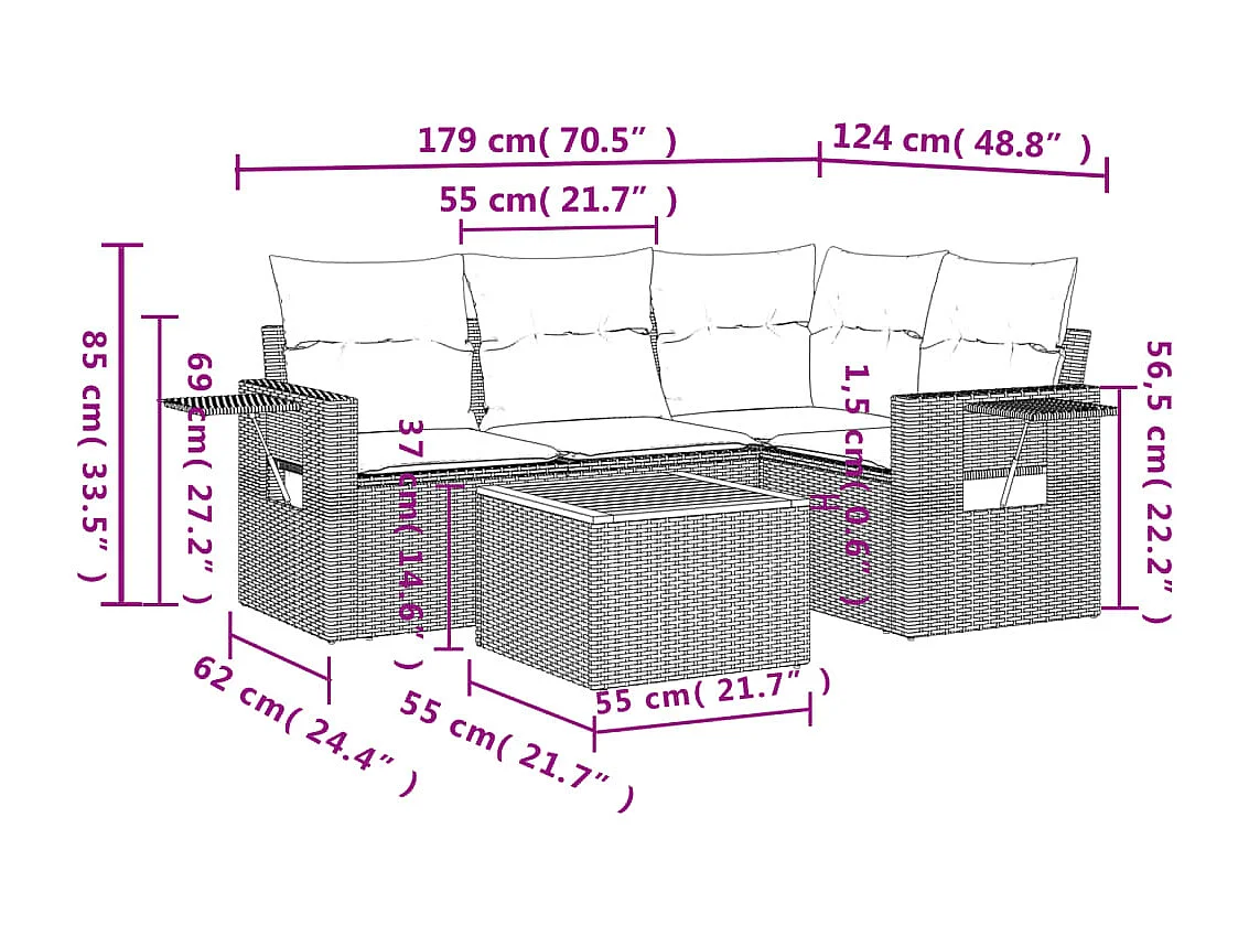 Salon de jardin avec coussins 5 pcs beige résine tressée