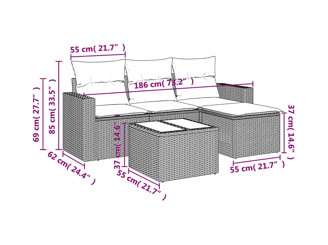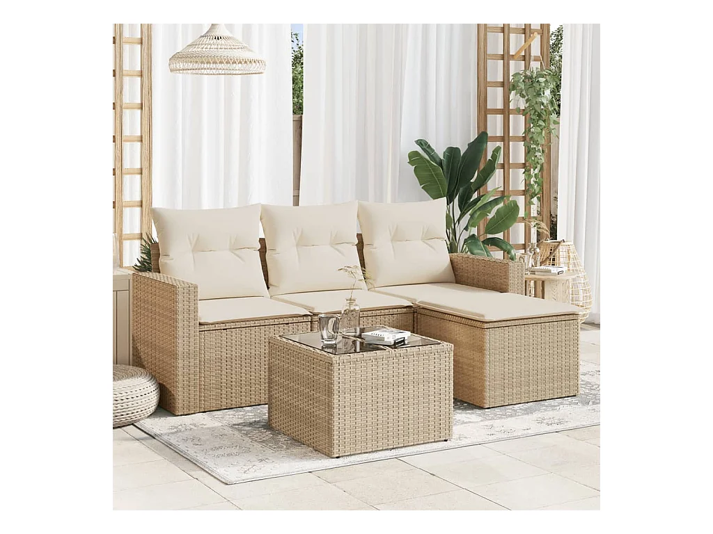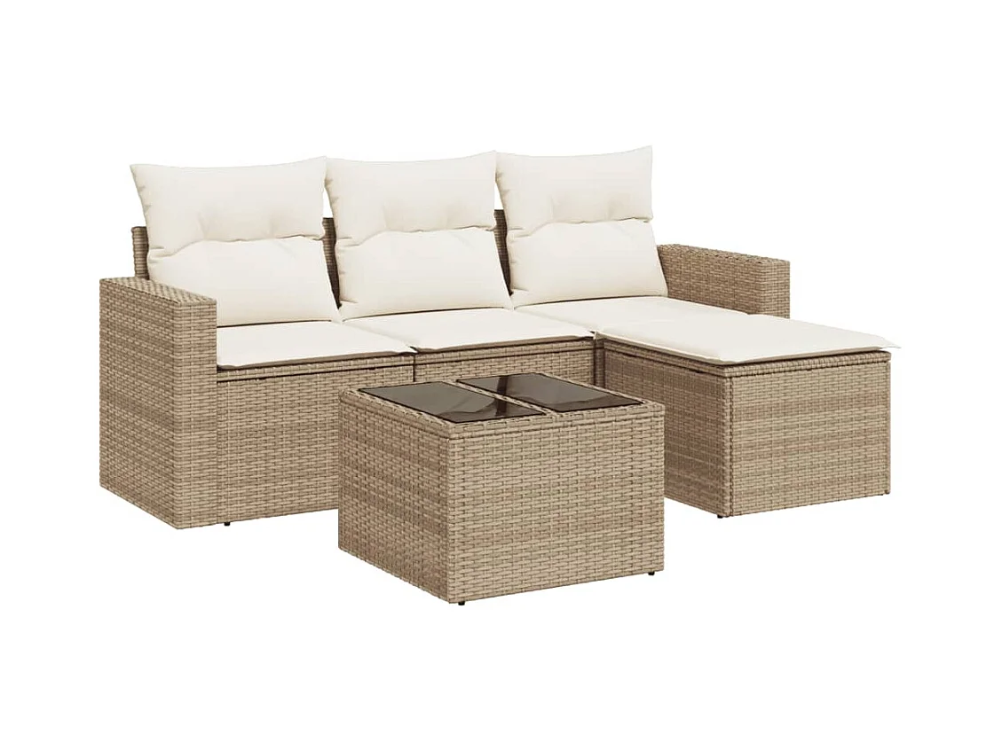 Salon de jardin avec coussins 5 pcs beige résine tressée