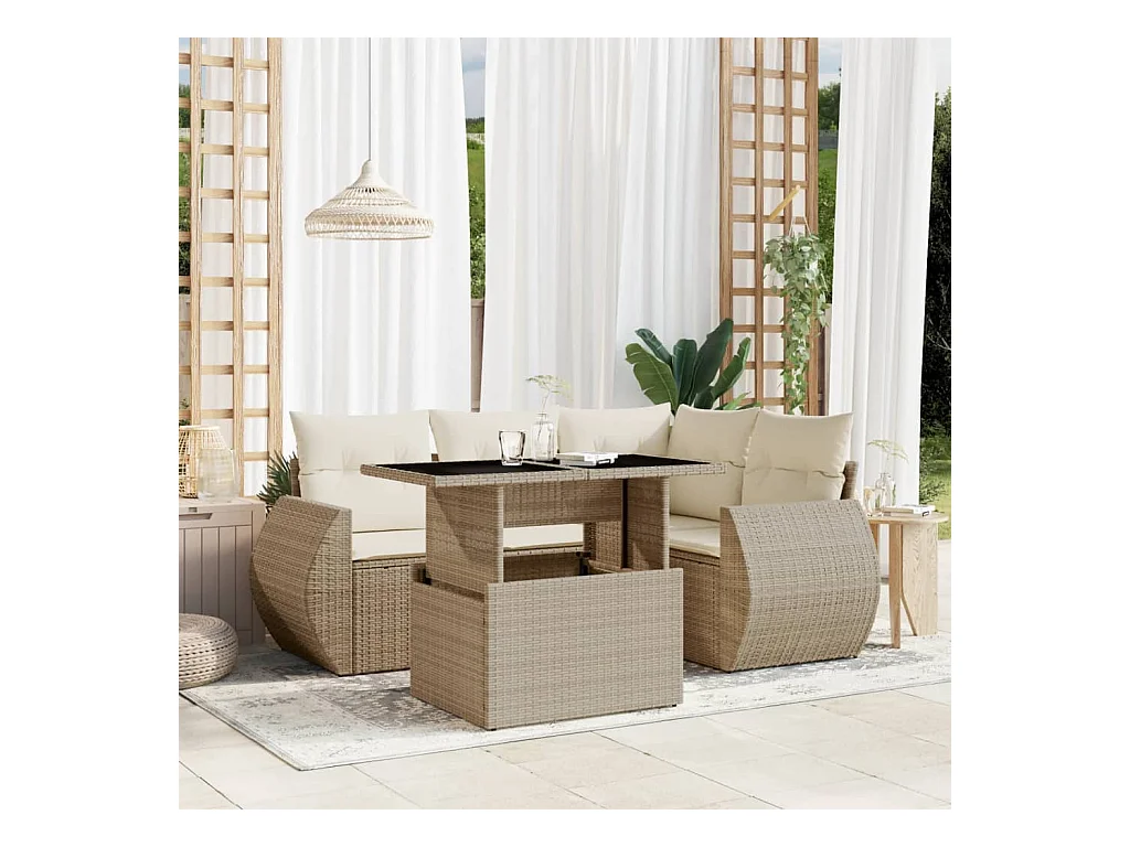 Salon de jardin avec coussins 5 pcs beige résine tressée