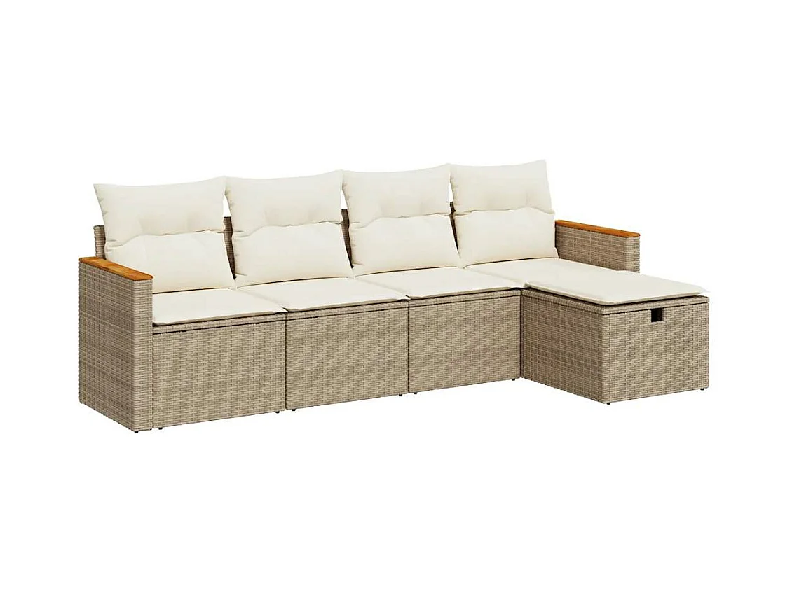Salon de jardin avec coussins 5 pcs beige résine tressée