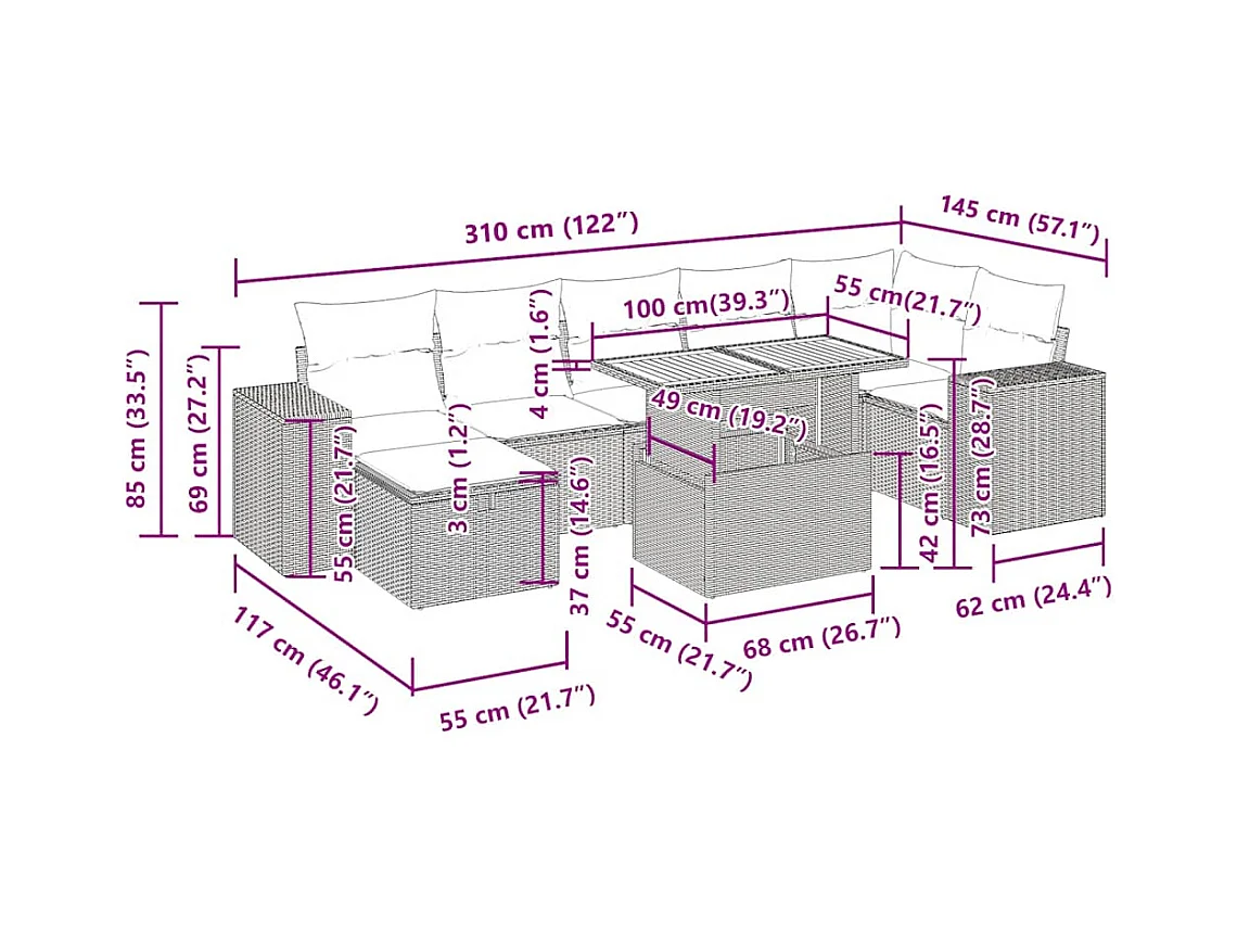 Salon de jardin avec coussins 5 pcs beige résine tressée