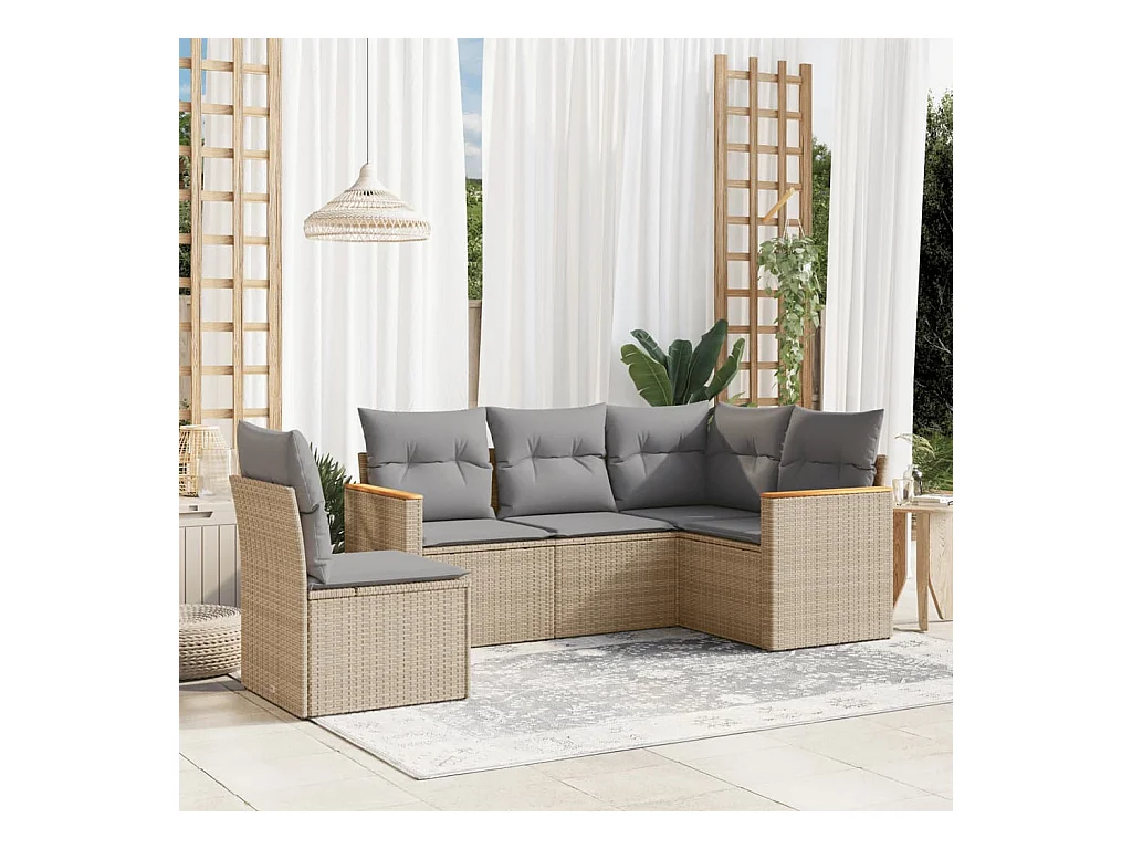 Salon de jardin avec coussins 5 pcs beige résine tressée FR76021