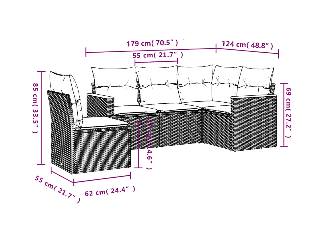 Salon de jardin avec coussins 4 pcs beige résine tressée BE77080