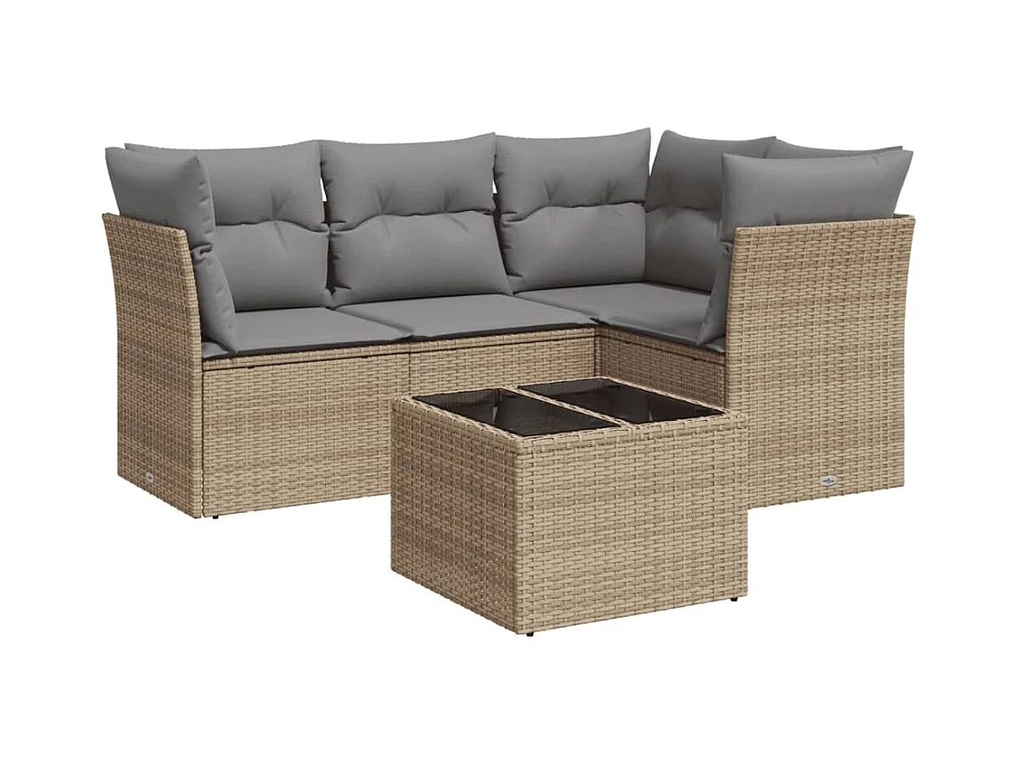 Salon de jardin avec coussins 5 pcs beige résine tressée BE31003
