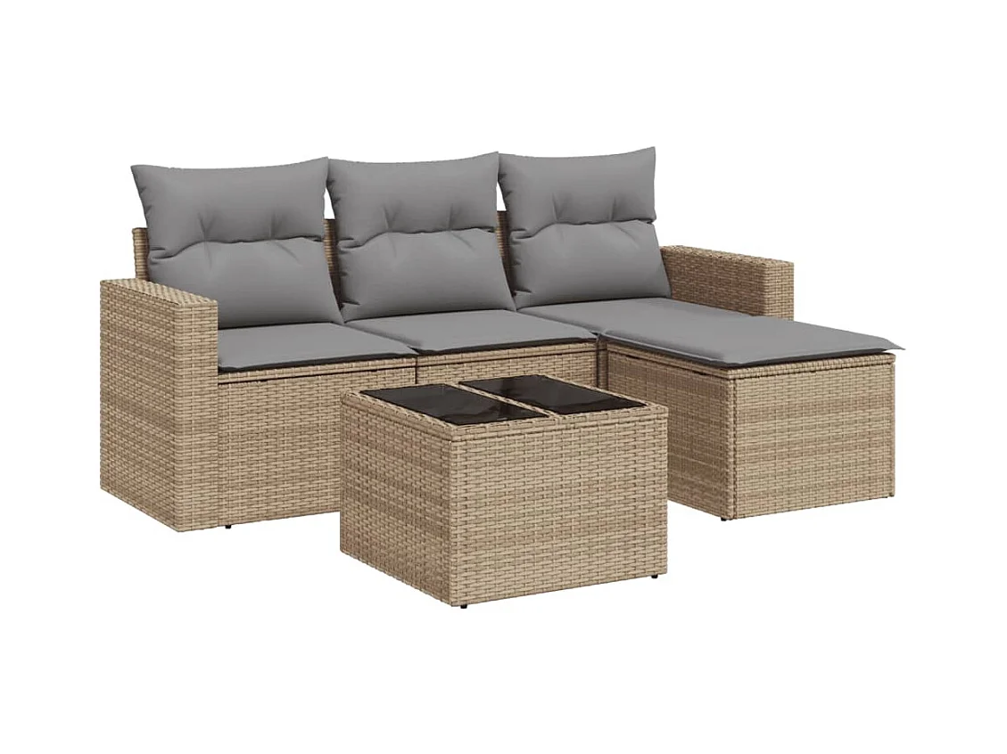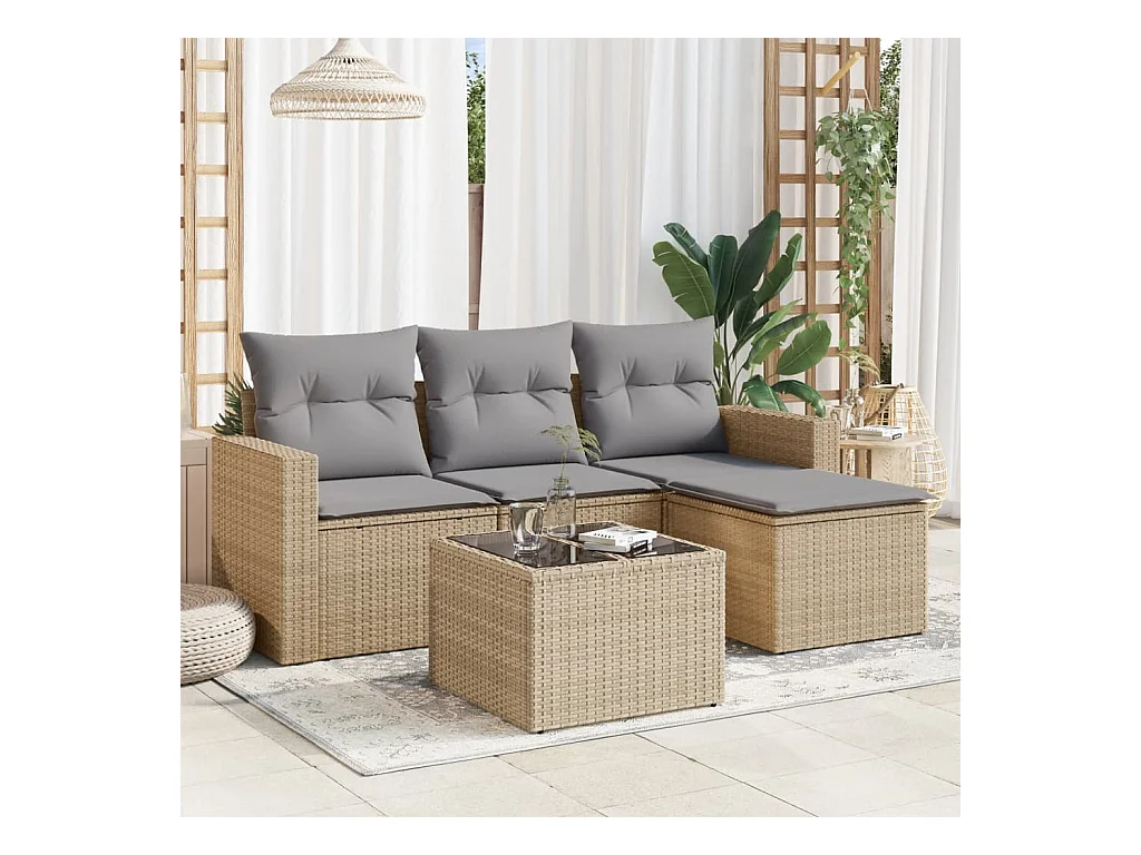 Salon de jardin avec coussins 5 pcs beige résine tressée BE12363