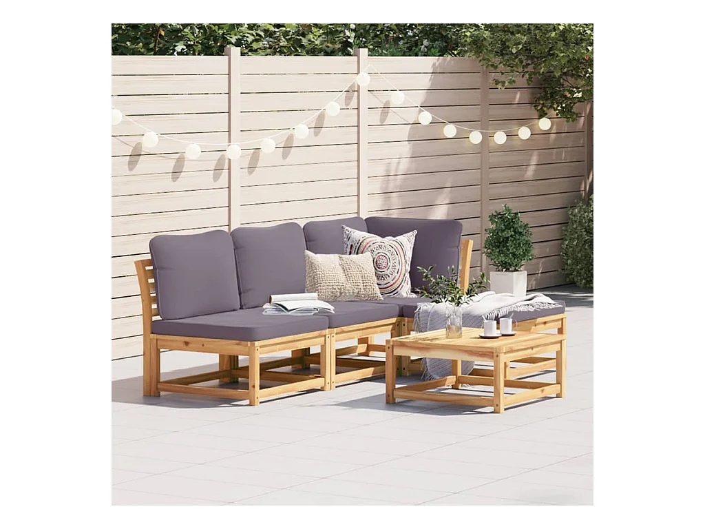 Salon de jardin avec coussins 5 pcs Bois d'acacia solide