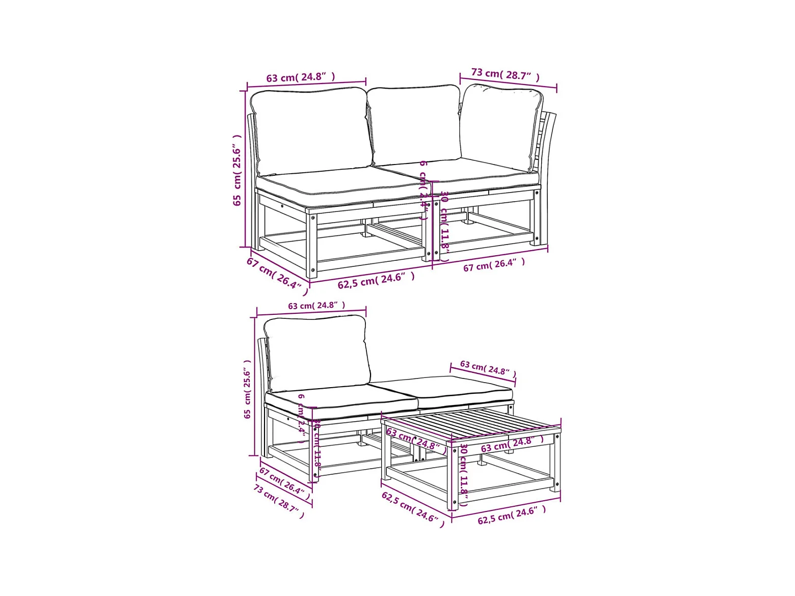 Salon de jardin 4 pcs avec coussins Bois d'acacia solide