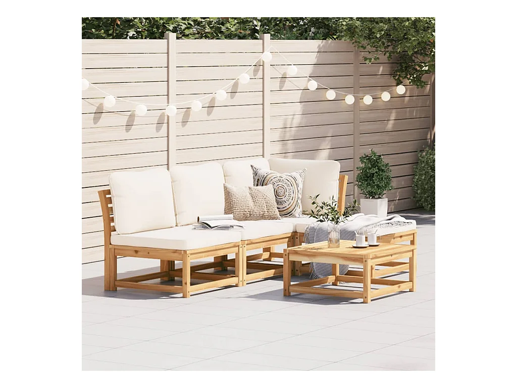 Salon de jardin avec coussins 5 pcs Bois d'acacia solide