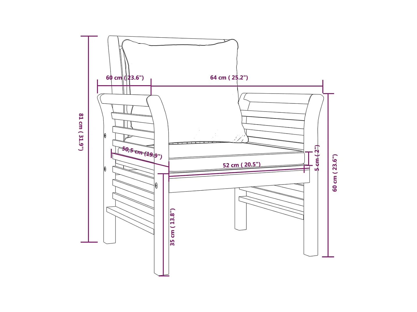 Salon de jardin 3 pcs avec coussins bois massif d'acacia