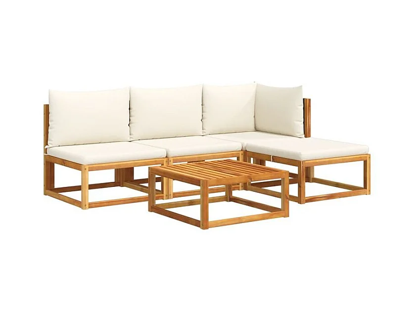 Salon de jardin avec coussins 5 pcs Bois d'acacia solide