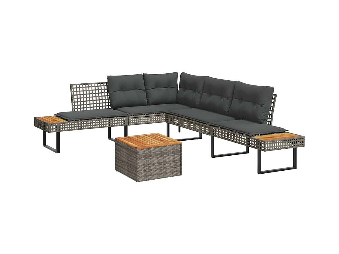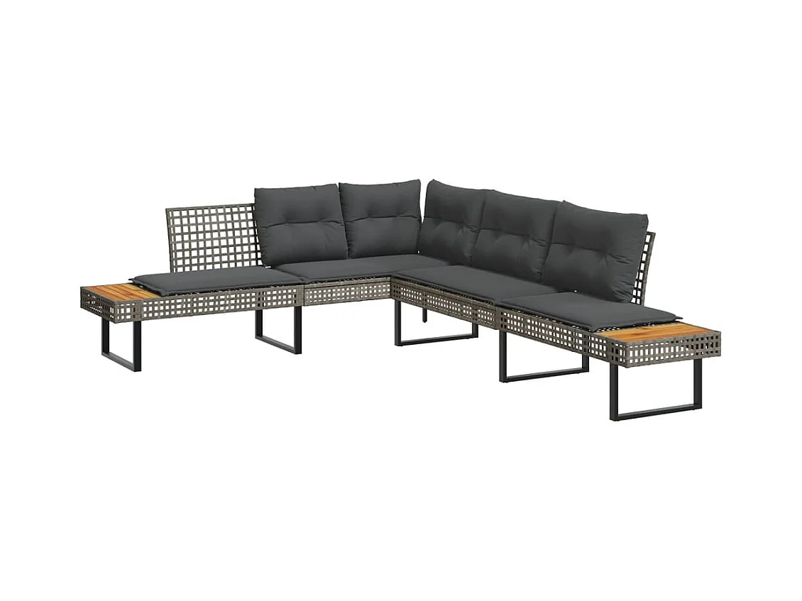 Salon de jardin avec coussins 5 pcs gris résine tressée acacia